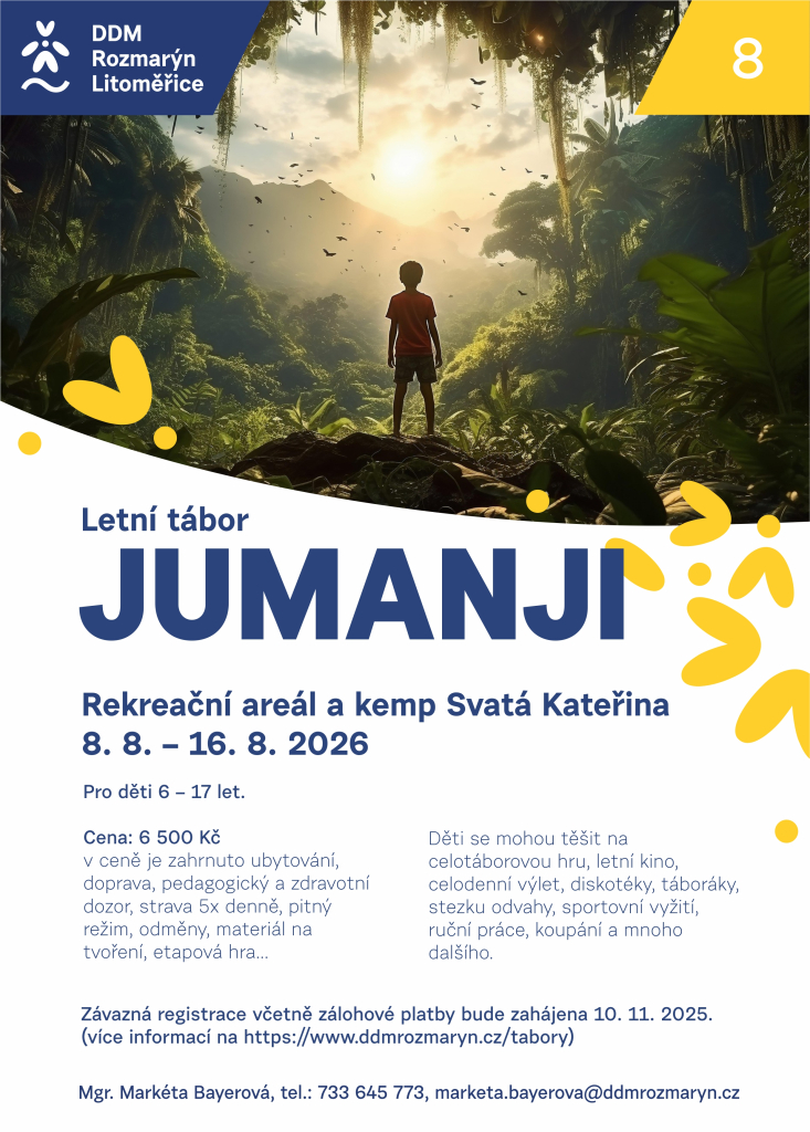 Hlavní vedoucí: Mgr. Markéta Bayerová, Tel.: 733 645 773, marketa.bayerova@ddmrozmaryn.cz